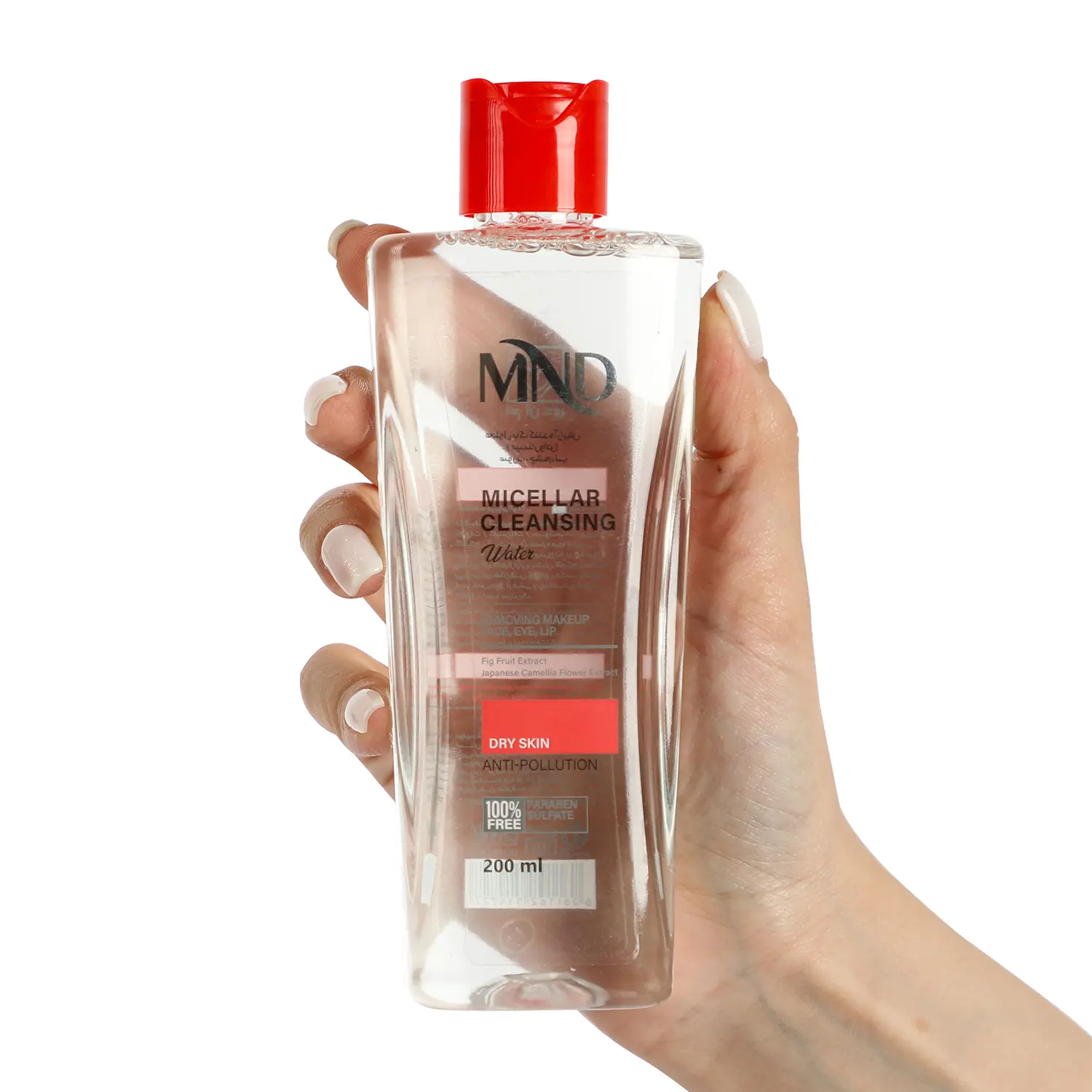 خرید اینترنتی میسلار واتر پوست خشک 200 میلی لیتر MND ایران | دکتر پن اسکین💧 میسلار واتر پوست خشک ام ان دی (MND) – 200 میلیلیتر پاکسازی آرایش + آبرسانی عمیق + حفظ نرمی و لطافت پوست میسلار واتر MND مخصوص پوست خشک یک پاککننده ملایم و آبرسان است که با تکنولوژی مولکولهای میسل، آرایش، آلودگی و چربی اضافه را به خود جذب کرده و بدون نیاز به آب پوست را کاملاً تمیز میکند. فرمولاسیون این محصول با ترکیبات رطوبترسان و نرمکننده غنی شده است تا بدون ایجاد خشکی و کشیدگی، لطافت و نرمی پوست حفظ شود. این پاککننده مناسب صورت، چشم و لب است و پس از استفاده، پوست شما احساس آرامش و رطوبت میکند.