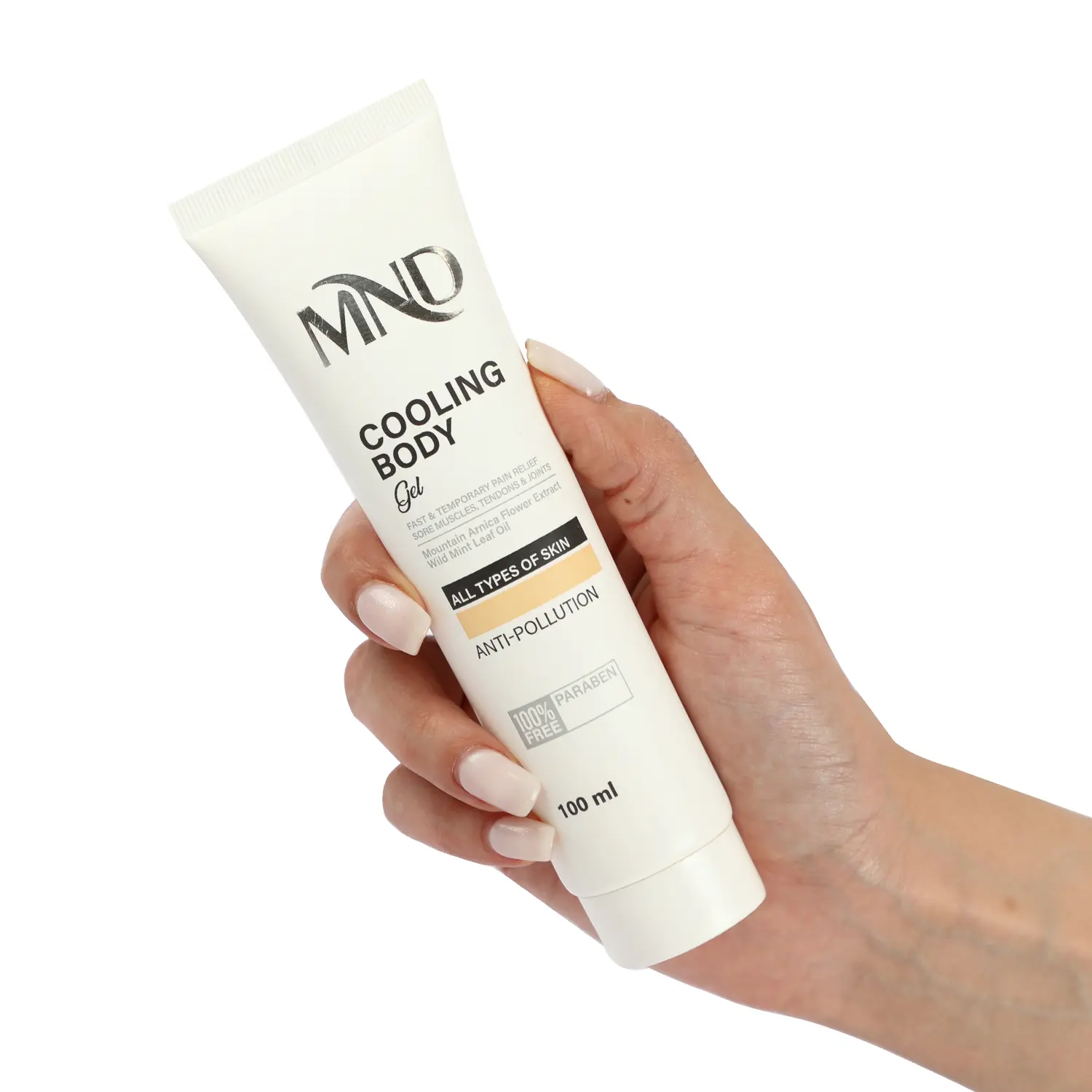 خرید اینترنتی ژل خنک کننده بدن 100 میلی لیتر MND ایران | دکتر پن اسکین❄ ژل خنککننده بدن ام ان دی (MND) حجم 100 میلیلیتر آرامش فوری پوست، کاهش درد عضلات و احساس خنکی ماندگار ژل خنککننده بدن MND محصولی تخصصی برای ایجاد احساس خنکی و کاهش التهاب در نواحی مختلف بدن است. این ژل با بهرهگیری از منتول، عصاره آلوئهورا و سایر ترکیبات تسکیندهنده، به سرعت روی پوست عمل کرده و باعث رفع خستگی عضلات، کاهش گرما و ایجاد حس آرامش میشود. اگر بعد از ورزش یا فعالیت روزانه، احساس خستگی و درد عضلانی دارید، یا پوستتان بعد از آفتابسوختگی ملتهب و داغ شده است، این ژل میتواند بهترین انتخاب باشد.