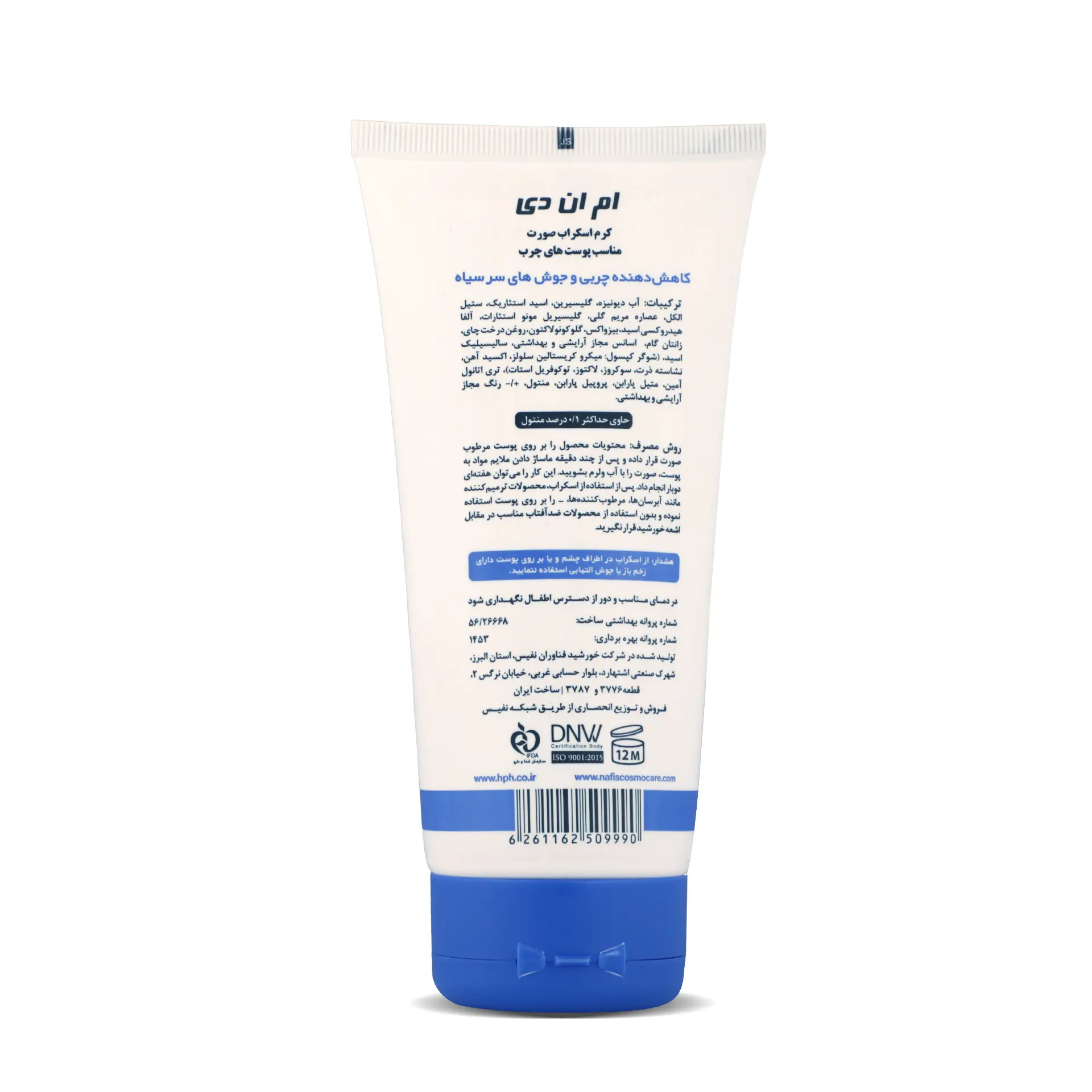 کرم اسکراب صورت مناسب پوستهای چرب 200 میلی لیتر MND ایران | دکتر پن اسکینکرم اسکراب صورت MND – مناسب پوست چرب – ۲۰۰ میلیلیتر پاکسازی عمقی + کنترل چربی + پوست صاف و شاداب داشتن پوست چرب میتواند باعث براقی زودرس، تجمع سبوم و آلودگی و ایجاد جوشهای سرسیاه شود. برای مراقبت روزانه از پوست چرب، انتخاب یک کرم اسکراب صورت تخصصی ضروری است. کرم اسکراب صورت MND مخصوص پوستهای چرب، با فرمولی ملایم و موثر، آلودگی، چربی اضافی و سلولهای مرده پوست را پاک میکند و پوستی صاف، شاداب و مات ایجاد مینماید.